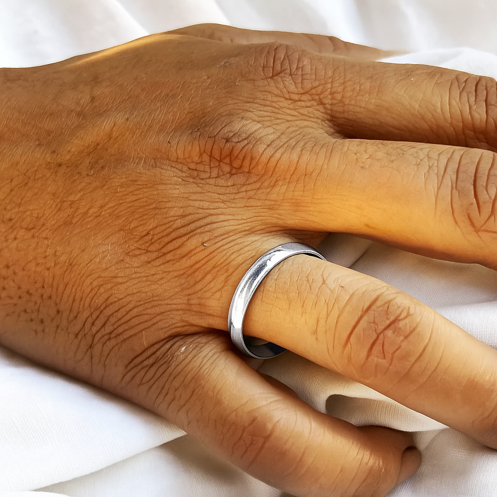 Devido a essa espessura elevada, cada anel apresenta aproximadamente 12 a 18 milésimos de ouro e 50 a 70 milésimos de prata, refletindo o volume real de metal depositado e assegurando maior resistência, durabilidade e acabamento superior para o uso diário.