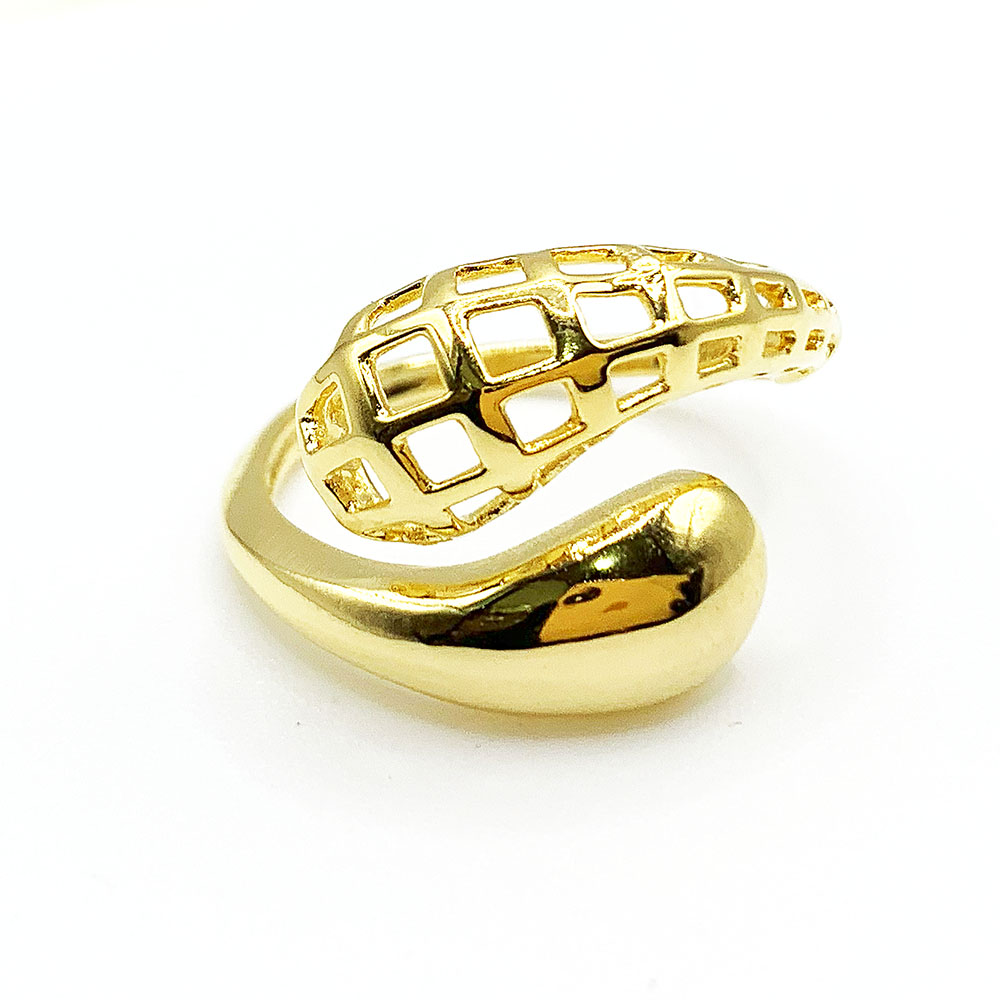 Anel Regulável Gota Lisa e Vazada Banhado à Ouro