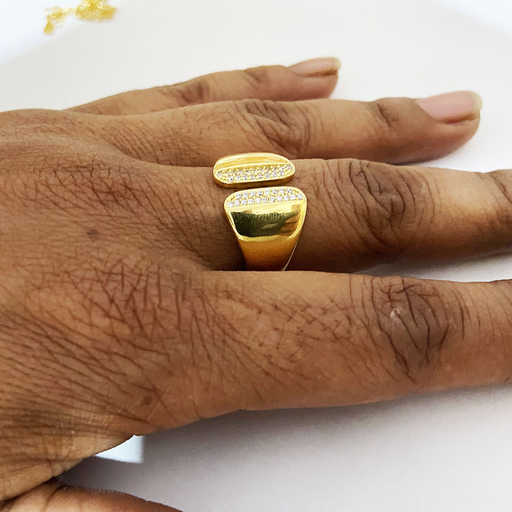 Anel Regulável Micro Cravejado em Zircônias Banhado à Ouro