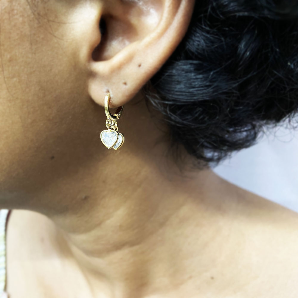 Argolinha 2 Pingentes de Coração de Zircônia Banhado à Ouro, com banho de 5 milésimos. Nossas peças passam por um processo de acabamento manual que proporciona brilho espelhado em nosso banho garantindo qualidade premium em nossos produtos. Damos garantia de 2 anos em nossas joias após o recebimento.