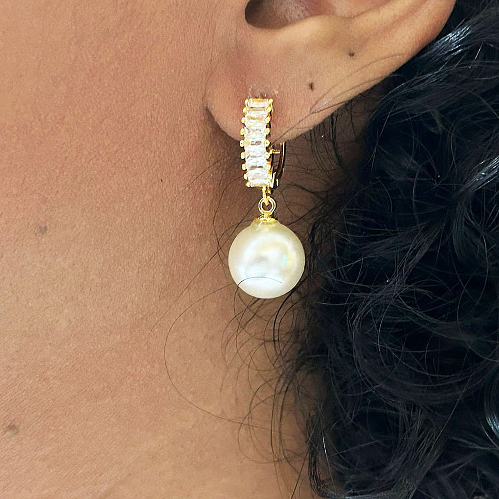 Argolinha Cravejada 13mm Zircônia Baguete Pingente Perola 10mm Banhado à Ouro, com banho de 5 milésimos. Nossas peças passam por um processo de acabamento manual que proporciona brilho espelhado em nosso banho garantindo qualidade premium em nossos produtos. Damos garantia de 2 anos em nossas joias após o recebimento.
