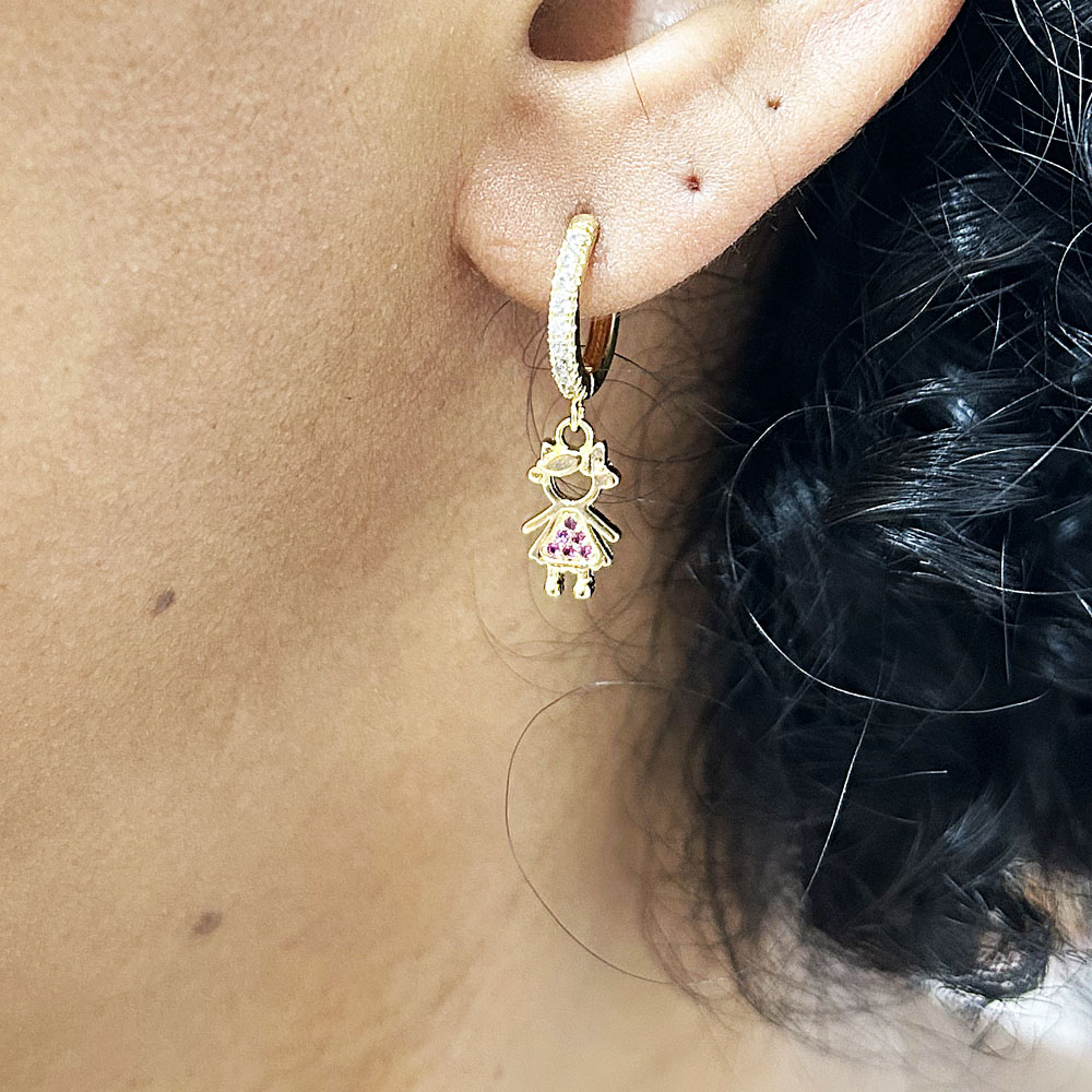 Argolinha Cravejada Pingente Menina Zircônia Rosa Banhado à Ouro , com banho de 5 milésimos. Nossas peças passam por um processo de acabamento manual que proporciona brilho espelhado em nosso banho garantindo qualidade premium em nossos produtos. Damos garantia de 2 anos em nossas joias após o recebimento.
