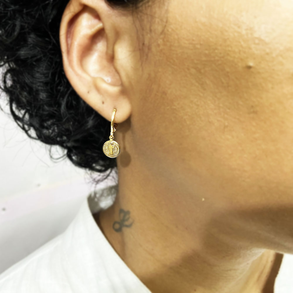 Argolinha Pingente de São Bento Banhado à Ouro, com banho de 5 milésimos. Nossas peças passam por um processo de acabamento manual que proporciona brilho espelhado em nosso banho garantindo qualidade premium em nossos produtos. Damos garantia de 2 anos em nossas joias após o recebimento.