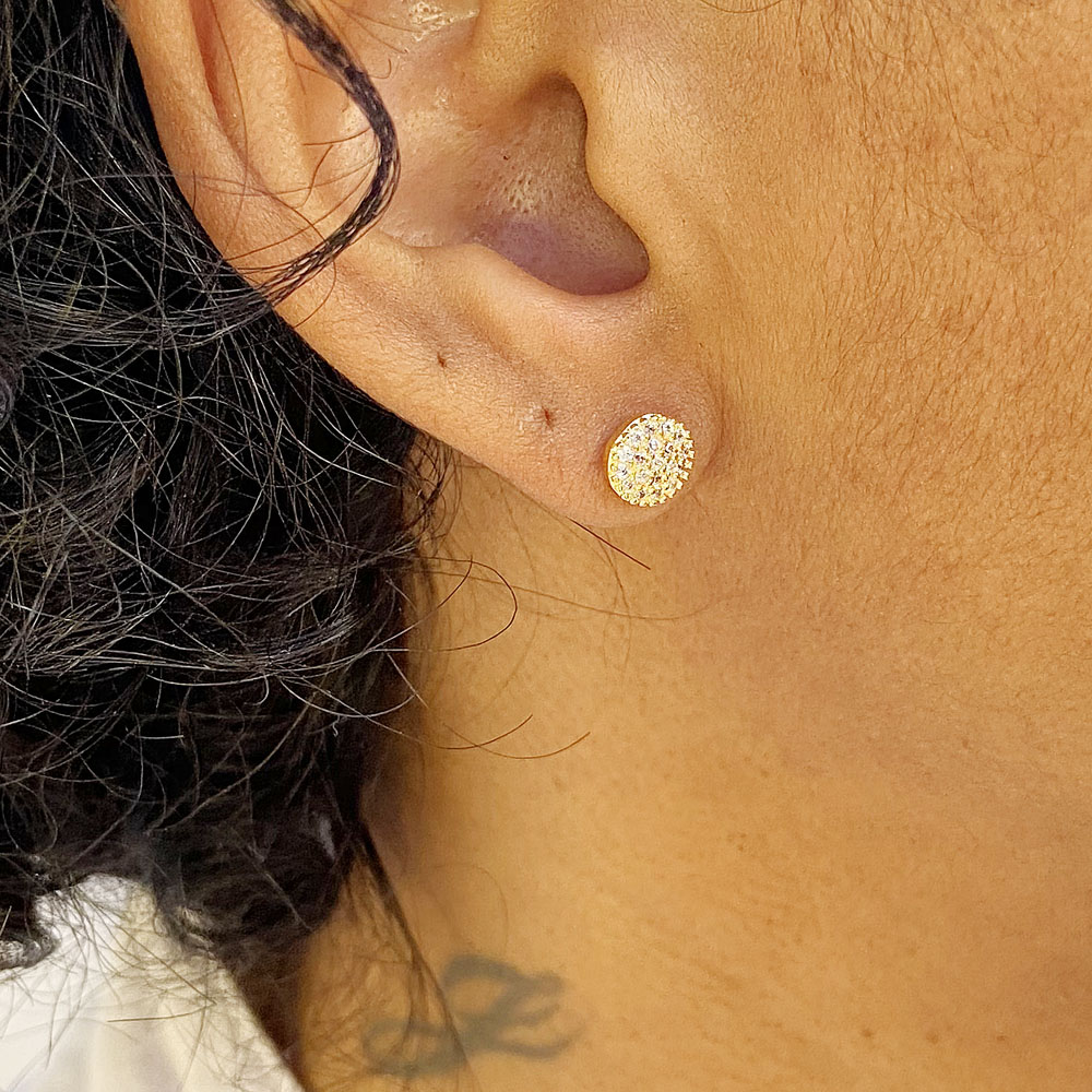 Brinco Botton 6mm Cravejado em Zircônias Banhado à Ouro, com banho de 5 milésimos. Nossas peças passam por um processo de acabamento manual que proporciona brilho espelhado em nosso banho garantindo qualidade premium em nossos produtos. Damos garantia de 2 anos em nossas joias após o recebimento.