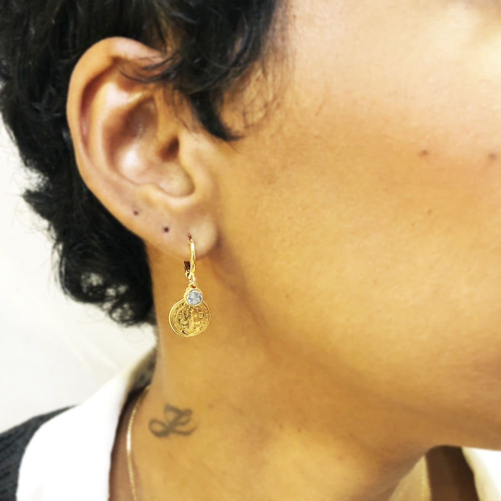 Brinco de Argolinha com Pingente de São Bento Zircônia Banhado à Ouro, com banho de 5 milésimos. Nossas peças passam por um processo de acabamento manual que proporciona brilho espelhado em nosso banho garantindo qualidade premium em nossos produtos. Damos garantia de 1 ano em nossas joias após o recebimento.