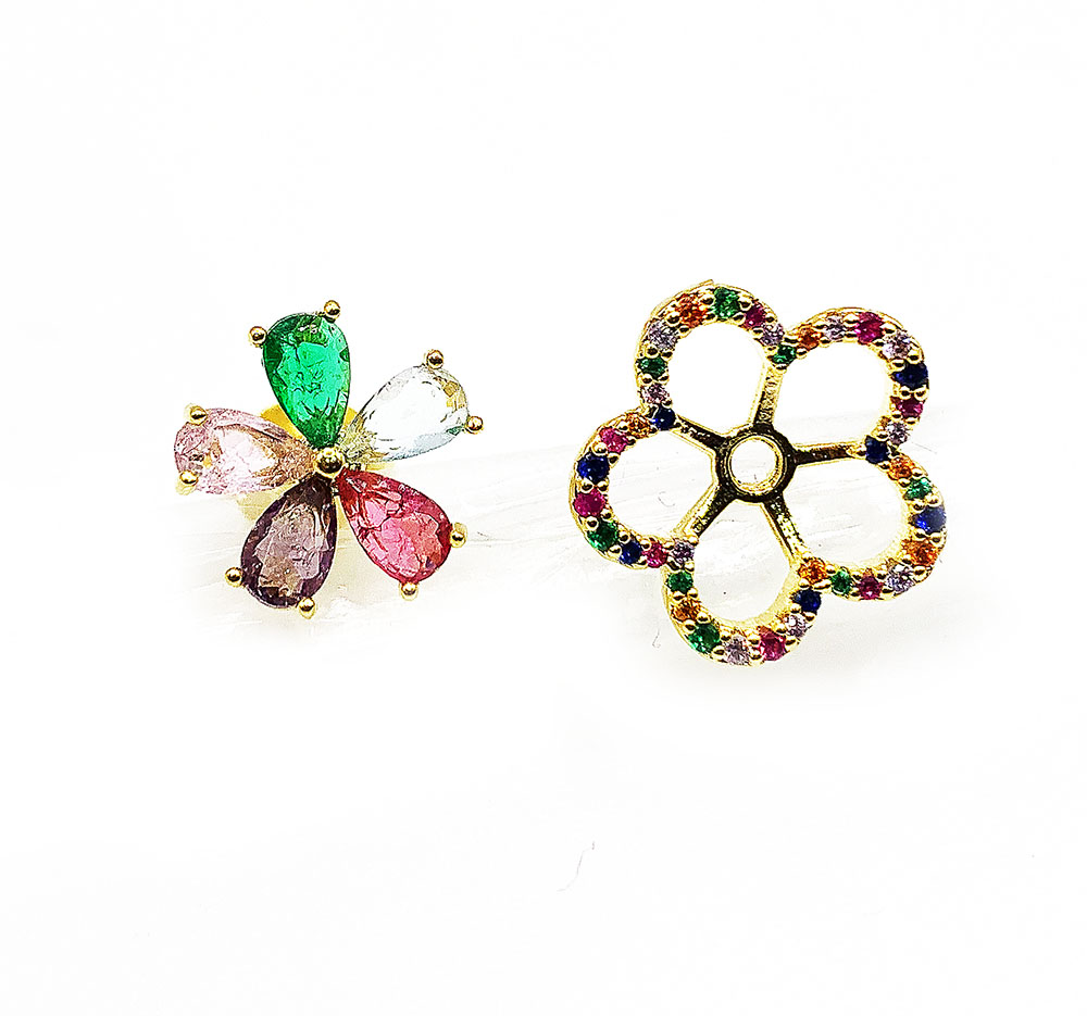 Brinco Flor Zircônias Gota 15mm Micro Cravejado Zircônias Coloridas Banhado à Ouro , com banho de 5 Milésimos . Nossas peças passam por um processo de acabamento manual que proporciona brilho espelhado em nosso banho garantindo qualidade premium em nossos produtos. Damos garantia de 2 anos em nossas joias após o recebimento.