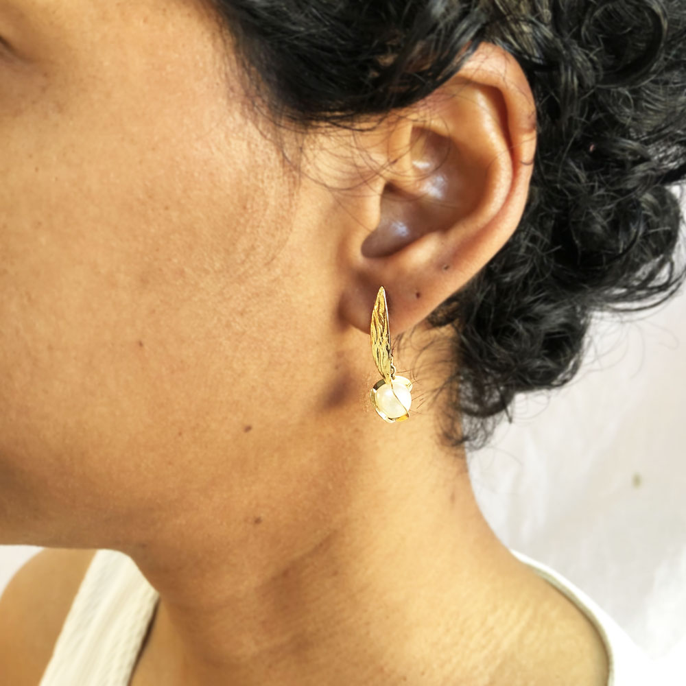 Brinco Médio com Pingente de Pérola Banhado à Ouro, com banho de 5 milésimos. Nossas peças passam por um processo de acabamento manual que proporciona brilho espelhado em nosso banho garantindo qualidade premium em nossos produtos. Damos garantia de 1 ano em nossas joias após o recebimento.