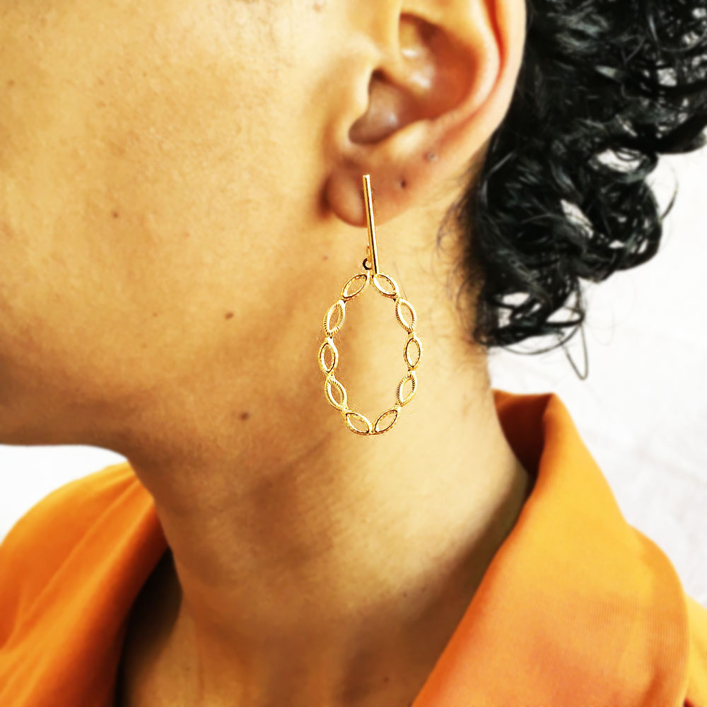 Brinco Médio Pingente de Elos Banhado à Ouro, com banho de 5 milésimos. Nossas peças passam por um processo de acabamento manual que proporciona brilho espelhado em nosso banho garantindo qualidade premium em nossos produtos. Damos garantia de 1 ano em nossas joias após o recebimento.