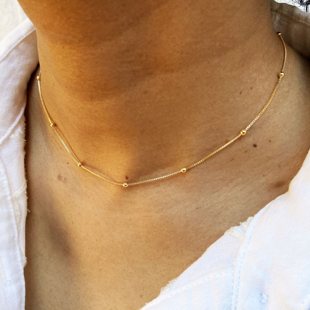 Chocker Veneziana 34+10cm Bolinhas Banhado à Ouro , com banho de 10 milésimos. Nossas peças passam por um processo de acabamento manual que proporciona brilho espelhado em nosso banho garantindo qualidade premium em nossos produtos. Damos garantia de 2 anos em nossas joias após o recebimento.