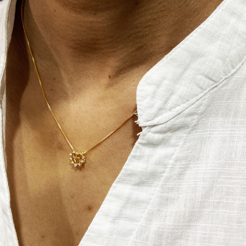 Colar 45cm Veneziana Coração Vazado Zircônia e Cruz Banhado à Ouro, com banho de 10 milésimos. Nossas peças passam por um processo de acabamento manual que proporciona brilho espelhado em nosso banho garantindo qualidade premium em nossos produtos. Damos garantia de 2 anos em nossas joias após o recebimento.