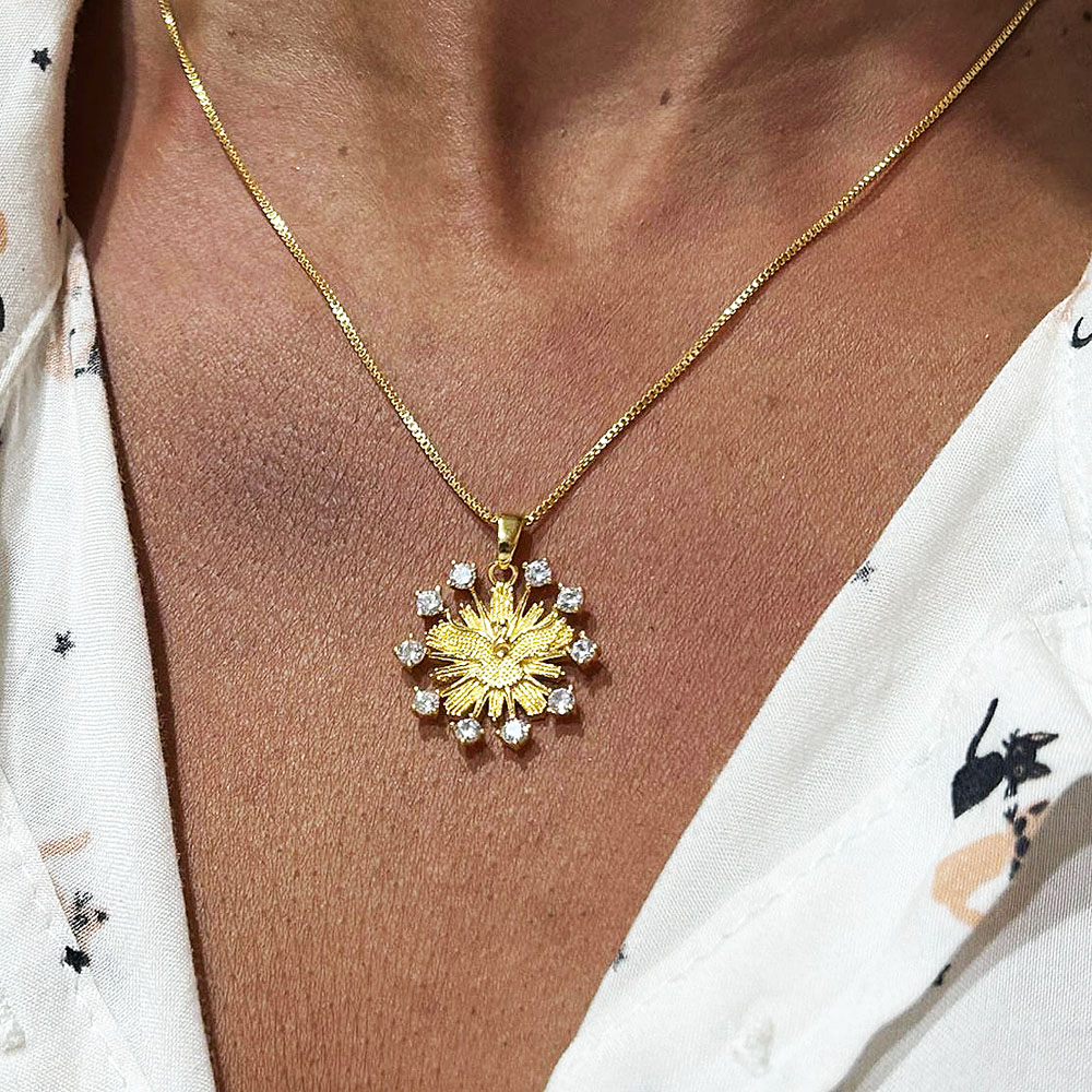 Colar Veneziana 45cm Pingente Medalha Espírito Santo 20mm Cravejada Banhado à Ouro, com banho de 25 milésimos (corrente). Nossas peças passam por um processo de acabamento manual que proporciona brilho espelhado em nosso banho garantindo qualidade premium em nossos produtos. Damos garantia de 2 anos em nossas joias após o recebimento.