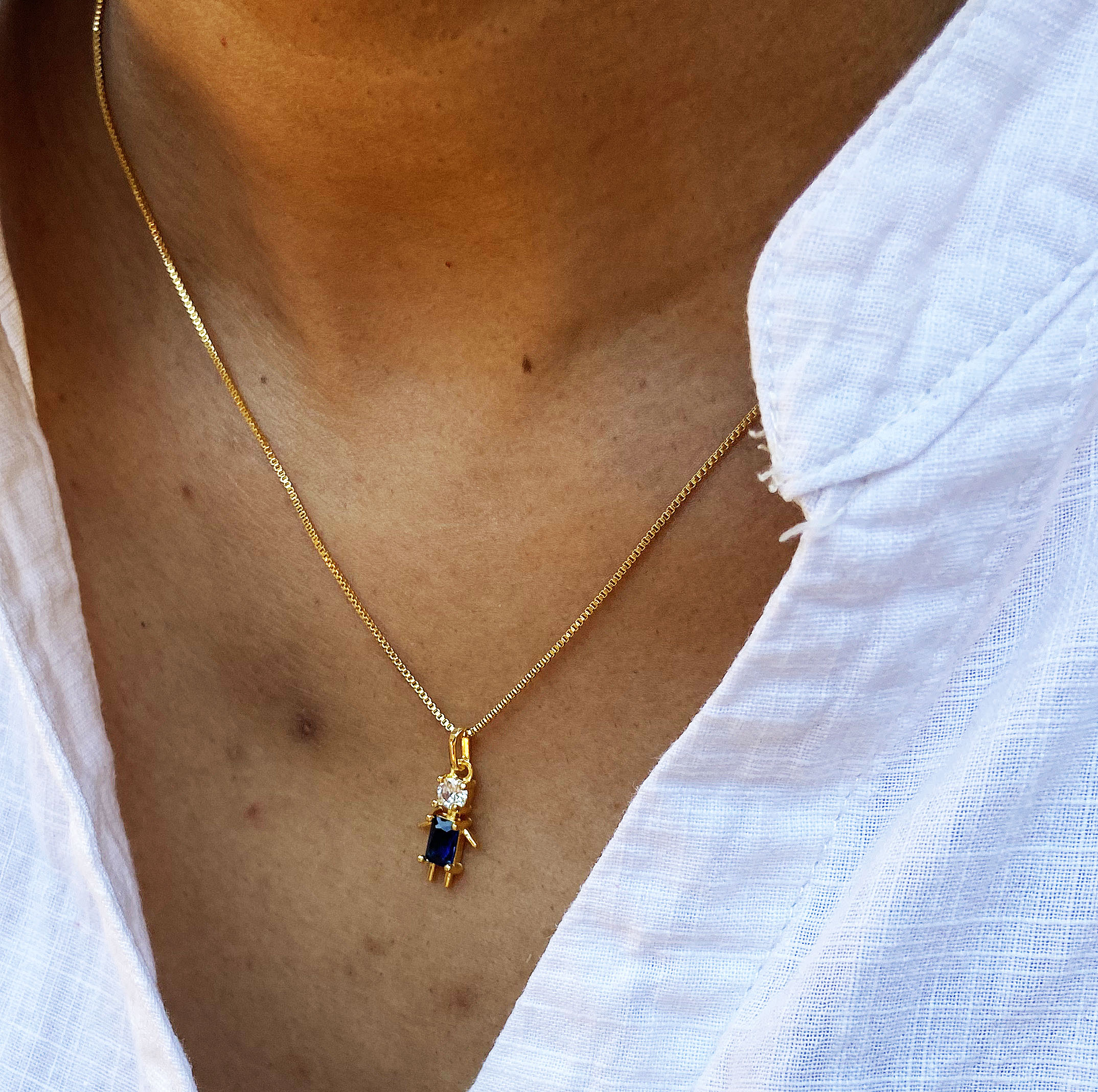 Colar Veneziana Pingente Menino Zircônia Azul Banhado à Ouro, com banho de 10 milésimos. Nossas peças passam por um processo de acabamento manual que proporciona brilho espelhado em nosso banho garantindo qualidade premium em nossos produtos. Damos garantia de 2 anos em nossas joias após o recebimento.