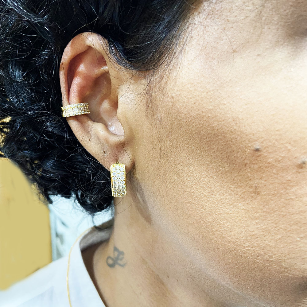 Piercing Fake 1 Fileira Zircônia e Zircônias Cravadas Cristal Banhado à Ouro, com banho de 5 milésimos. Nossas peças passam por um processo de acabamento manual que proporciona brilho espelhado em nosso banho garantindo qualidade premium em nossos produtos. Damos garantia de 2 anos em nossas joias após o recebimento.