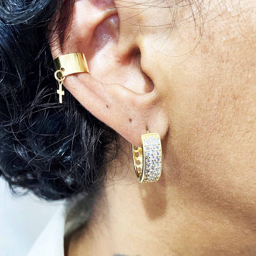 Piercing Fake Liso 6mm Pingente de Cruz Banhado à Ouro, com banho de 5 milésimos. Nossas peças passam por um processo de acabamento manual que proporciona brilho espelhado em nosso banho garantindo qualidade premium em nossos produtos. Damos garantia de 2 anos em nossas joias após o recebimento.