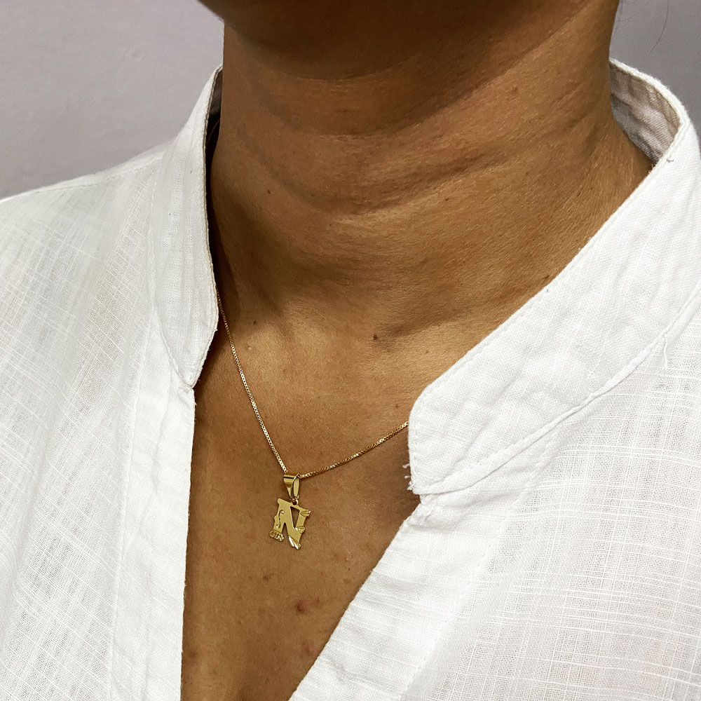 Pingente 15mm Letra N Banhado à Ouro, com banho de 7 milésimos. Nossas peças passam por um processo de acabamento manual que proporciona brilho espelhado em nosso banho garantindo qualidade premium em nossos produtos. Damos garantia de 2 anos em nossas joias após o recebimento.