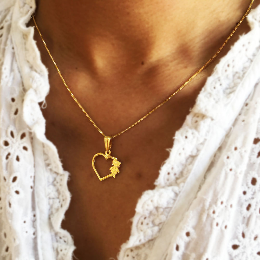 Pingente Coração Vazado Menina Banhado à Ouro, com banho de 7 milésimos. Nossas peças passam por um processo de acabamento manual que proporciona brilho espelhado em nosso banho garantindo qualidade premium em nossos produtos. Damos garantia de 1 ano em nossas joias após o recebimento.