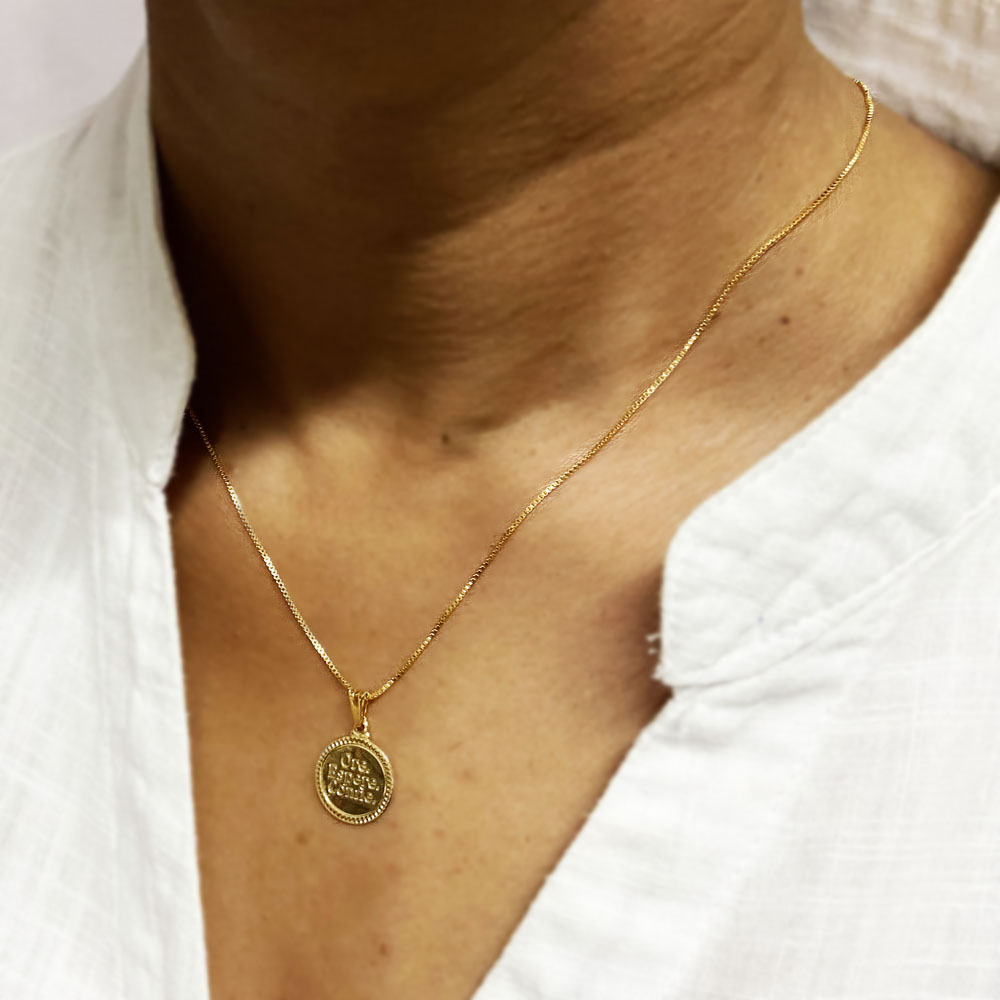 Pingente Medalha 15mm Ore Espere Confie Banhado à Ouro, com banho de 7 milésimos. Nossas peças passam por um processo de acabamento manual que proporciona brilho espelhado em nosso banho garantindo qualidade premium em nossos produtos. Damos garantia de 2 anos em nossas joias após o recebimento.