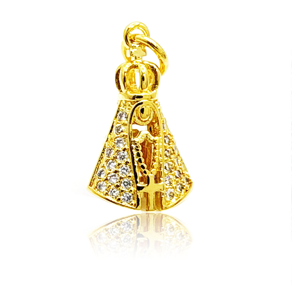 Pingente Nossa Senhora Dupla 15x11mm Micro Cravejada em Zircônias Cristal e Azul Banhado à Ouro , com banho de 7 milésimos. Nossas peças passam por um processo de acabamento manual que proporciona brilho espelhado em nosso banho garantindo qualidade premium em nossos produtos. Damos garantia de 2 anos em nossas joias após o recebimento.