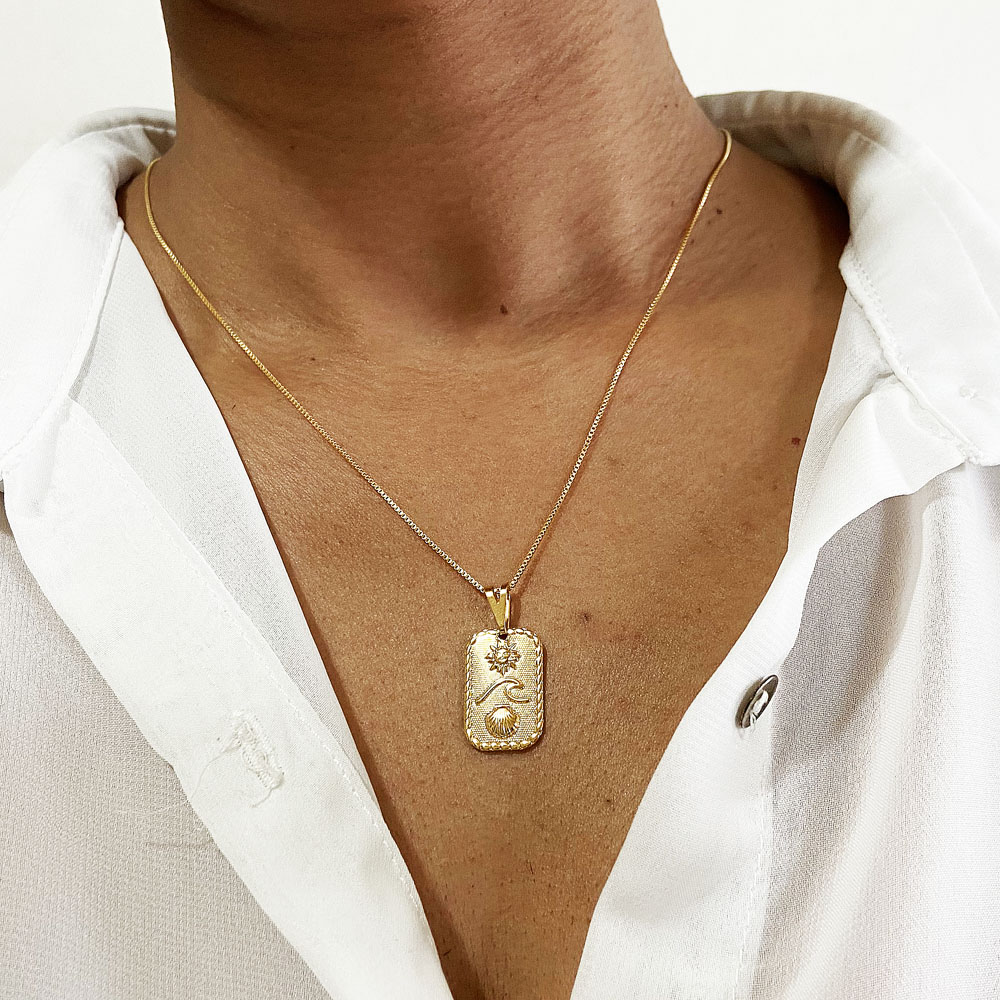 Pingente Placa Sol Mar e Concha Banhado à Ouro, com banho de 7 milésimos. Nossas peças passam por um processo de acabamento manual que proporciona brilho espelhado em nosso banho garantindo qualidade premium em nossos produtos. Damos garantia de 1 ano em nossas joias após o recebimento.